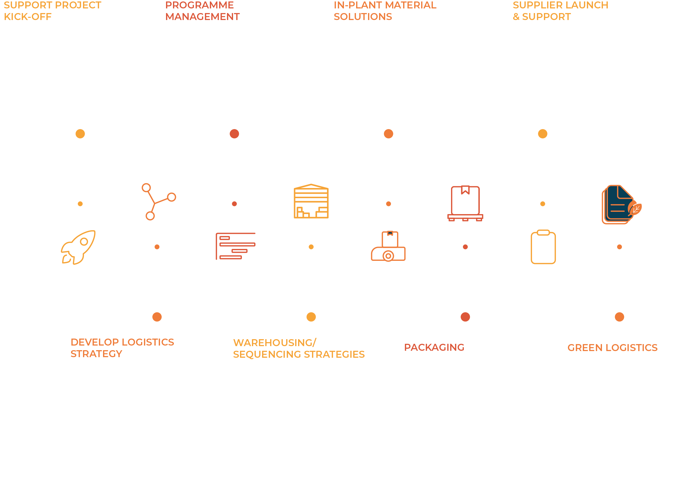 Our experienced leaders and logisticians help clients develop and optimise supply chains across various industries. Key services include supply chain strategy development, on-site logistics design, and support with equipment selection, procurement, and installation.